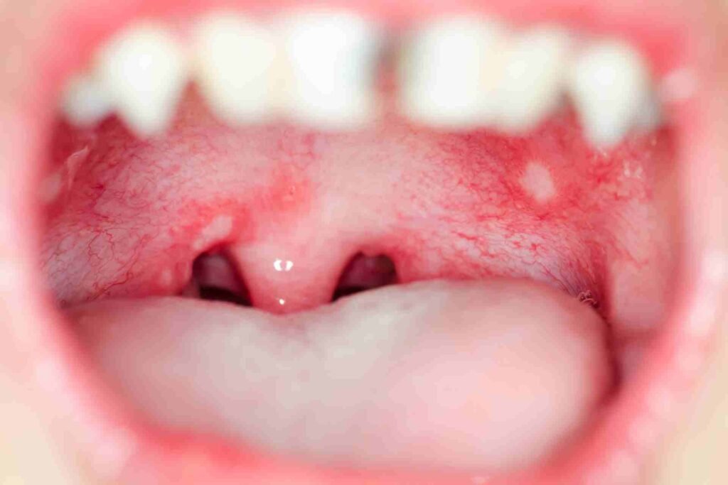7. Palatal Petechiae (Small Red Spots)